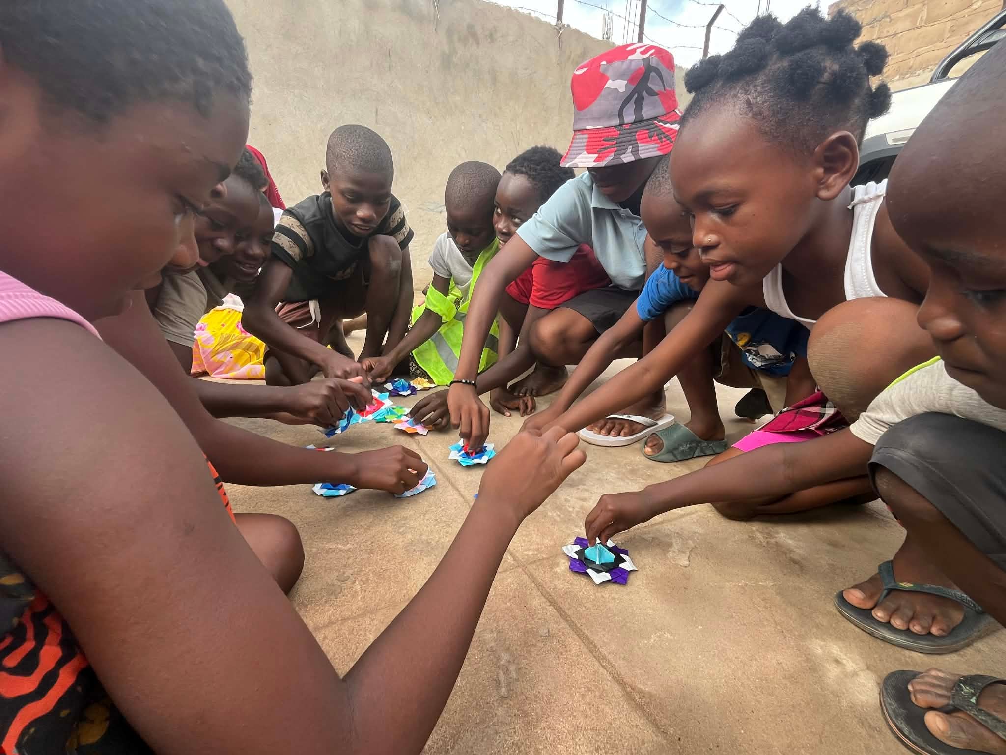 昨年、大阪での講義公演時に、門真みらい小学校の生徒さんから、たっくさんいただいた紙のコマを今年の1月にナジャが寺子屋へ持ち帰りました。