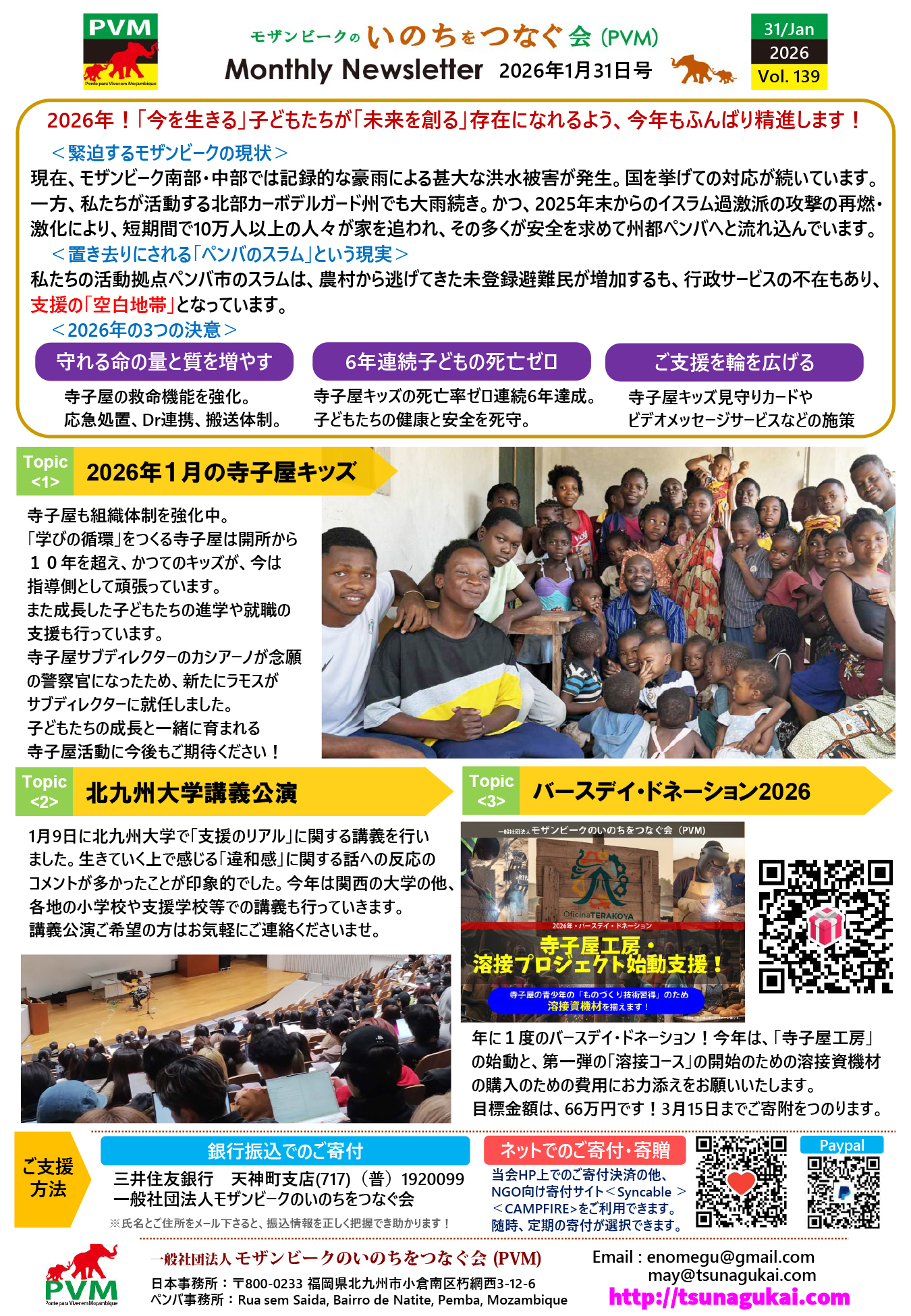 このような困難な状況だからこそ、子どもたちが自らの手で未来を切り拓くための「力」を届けたい。 そんな想いを込めた最新のニュースレター(Vol. 139)を添付します。