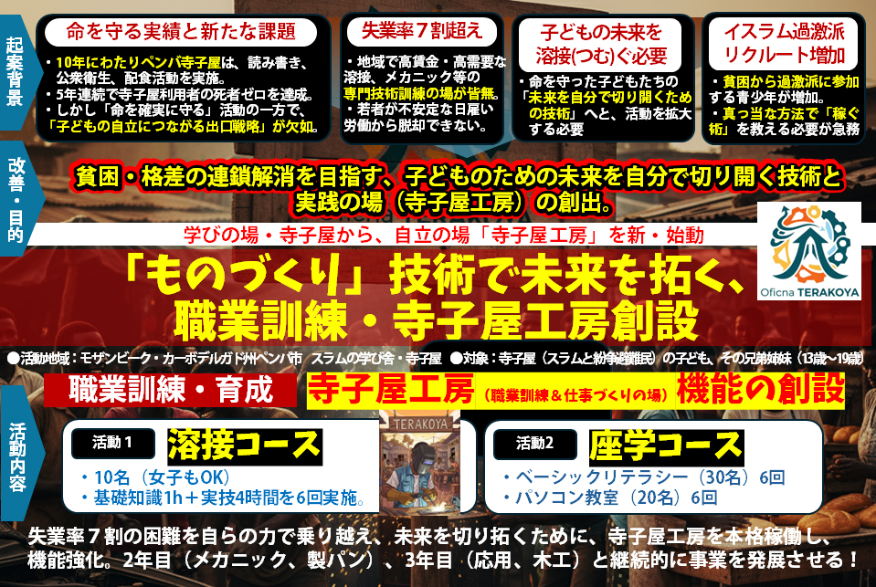 年に一度のこの機会に、今年は青少年の「ものづくり技術習得」を支援する【寺子屋工房・溶接プロジェクト】を開始します 。