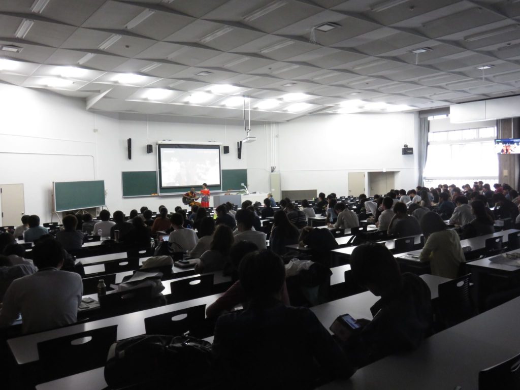 Information2017.10.06早稲田大学・鎌田東二先生の講義に登場 ポスト シェア はてブ 送る Pocket 早稲田大学の宗教学の授業 哲学者・宗教学者、そして神道ソングライターである鎌田東二先生の講義に登場! マコンデ族の風習や音楽を紹介し 鎌田先生からは石笛(北欧で入手した自然に穴があいた石で音を奏でます)や 横笛、ほら貝の演奏をしていただき、 神道ソングのギターの弾き語りも! 200人以上集まった生徒さんは、とてもラッキーだったと思います。